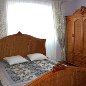 В спальной зоне имеется большая двуспальная кровать из высококачественной мебели «Ротанг» и прикроватные тумбочки, ортопедический матрас.